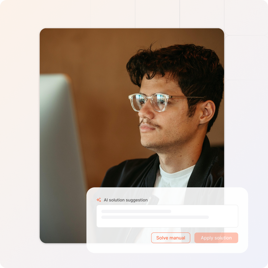 Every support ticket arrives with complete context. Our AI then analyzes the ticket to suggest the right fix instantly. Your team reviews, approves, and closes tickets faster.