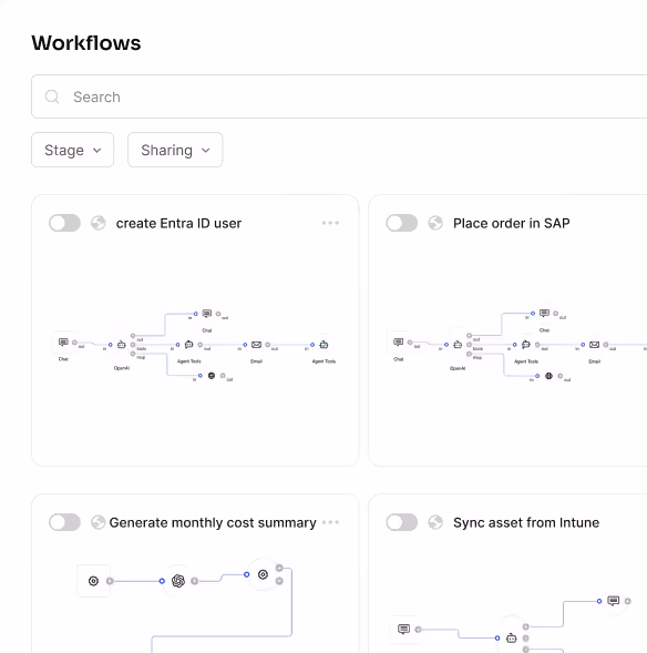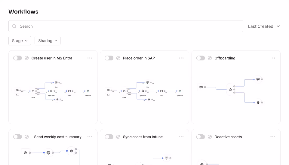 Recurring tasks that your team executes manually become automated workflows. You approve and make decisions and the workflow handles everything else.