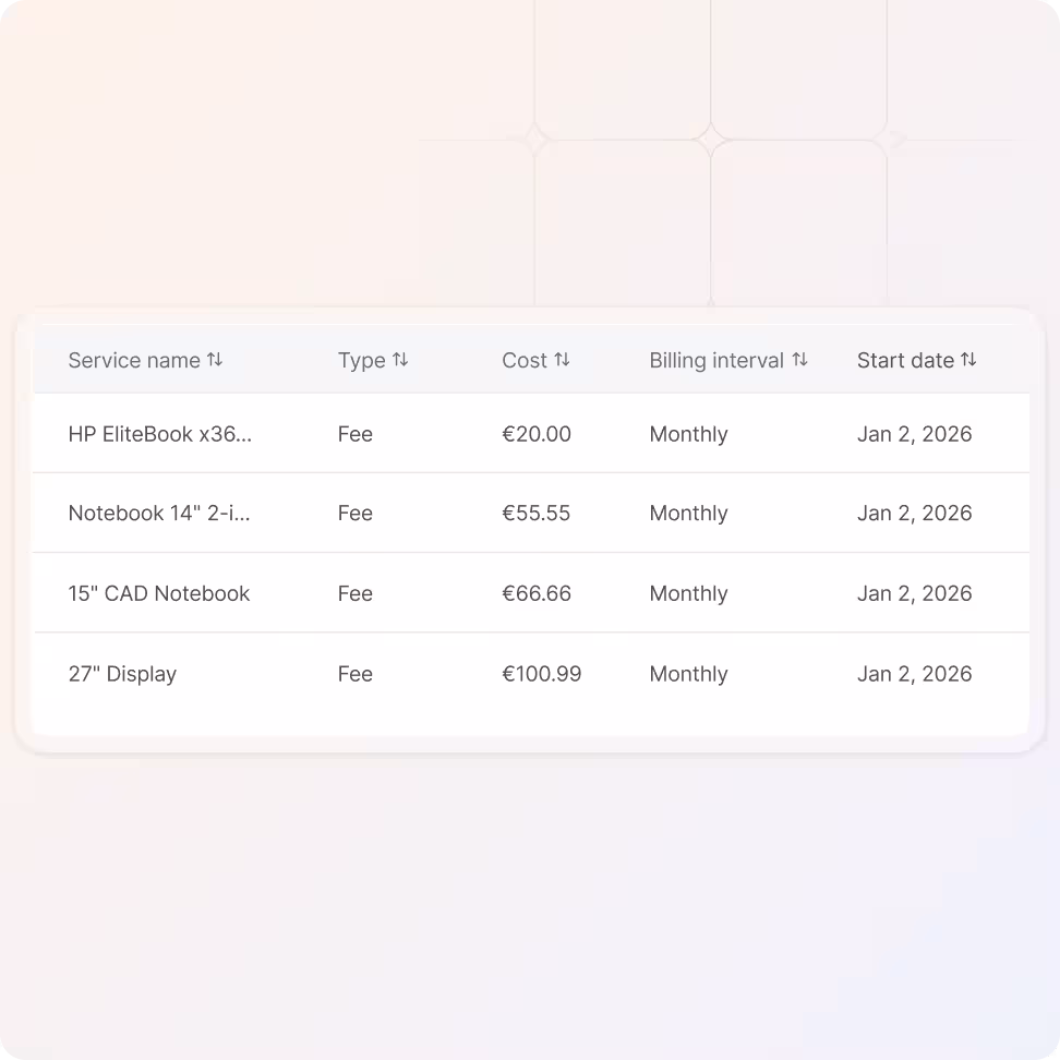 Integrated Billing connects every charge directly to the service you activated. Costs are tracked from day one and invoices are generated automatically.